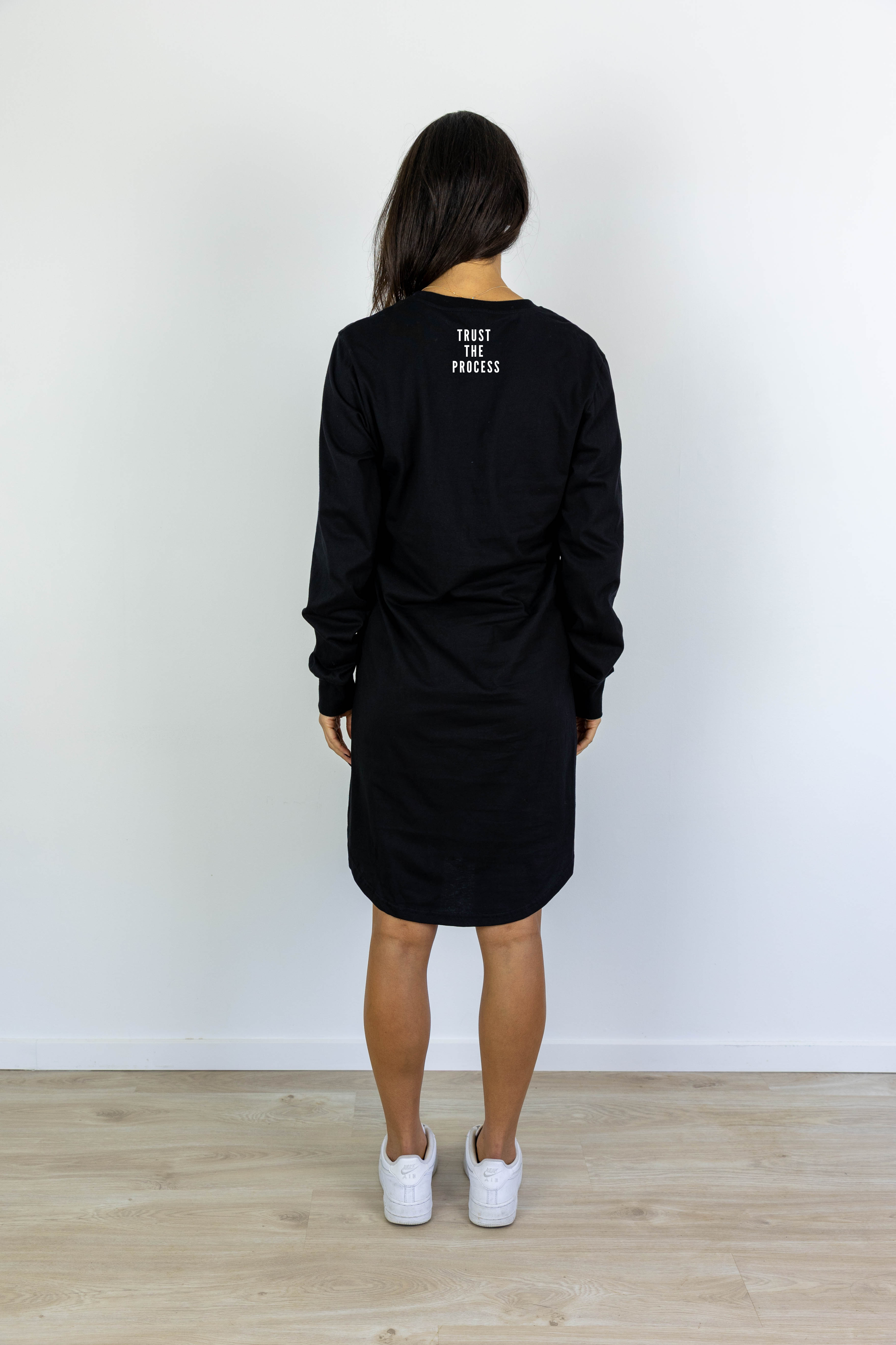 The ultimate tee dress is back for another season! Stay comfy in one of our Basic Longsleeve Dresses! Pair with your favourite sneakers or slides for an effortlessly cool summer’s day look.Details:- Tee dress style shape- Rounded neckline- Curved hemline that goes up at the side- Black Chinga patch on bottom corner- Longsleeves- Material: Cotton/Spandex
